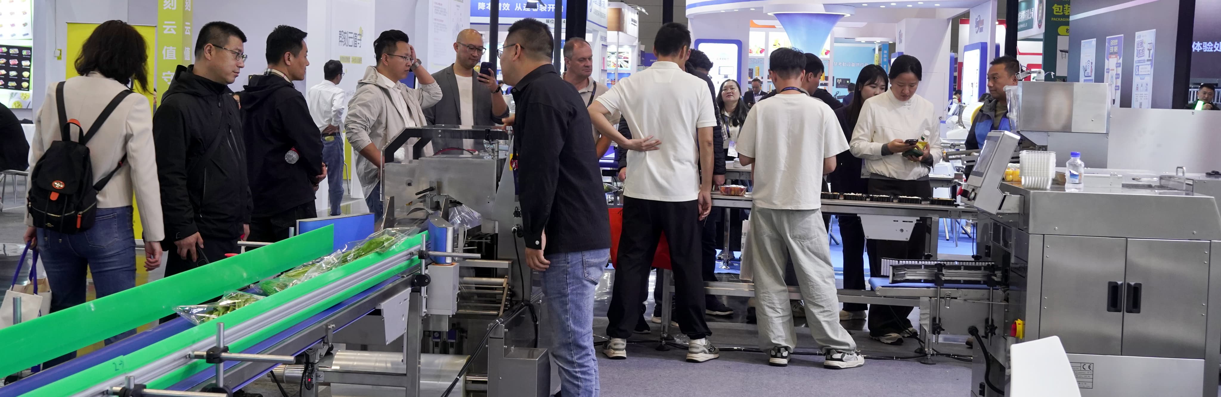除了新款机型,我们的蔬菜包装机、托盒包装机等设备也获得了广泛关注。许多客户现场表达了合作意向,并预约了后续工厂考察与样品测试。